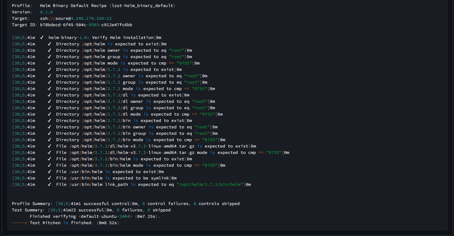 The final stage of the migration process occurs in Test Kitchen, a sandboxed testing environment within Chef, designed for end-to-end validation. Here, the migrated cookbooks are deployed on isolated test instances, allowing teams to execute InSpec tests, validate system behavior and fine-tune configurations in a controlled setup before any production rollout.