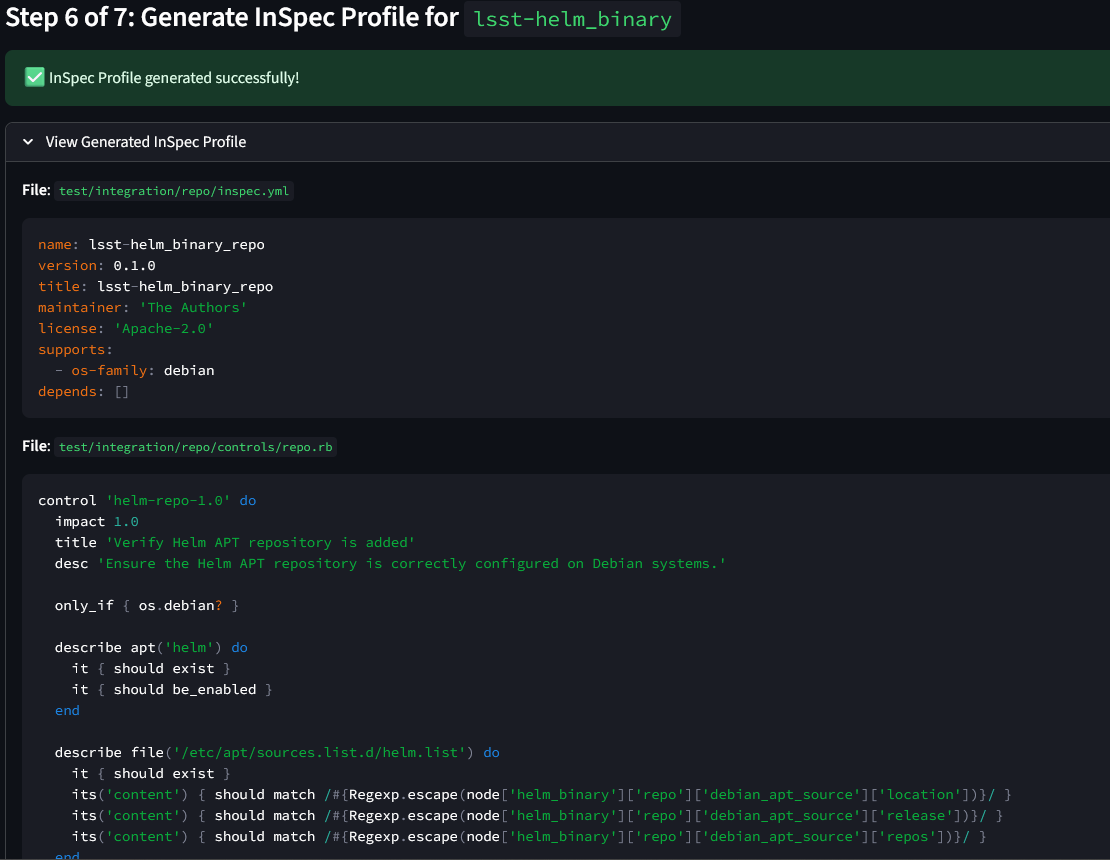 Figure 5: Generated InSpec Profile