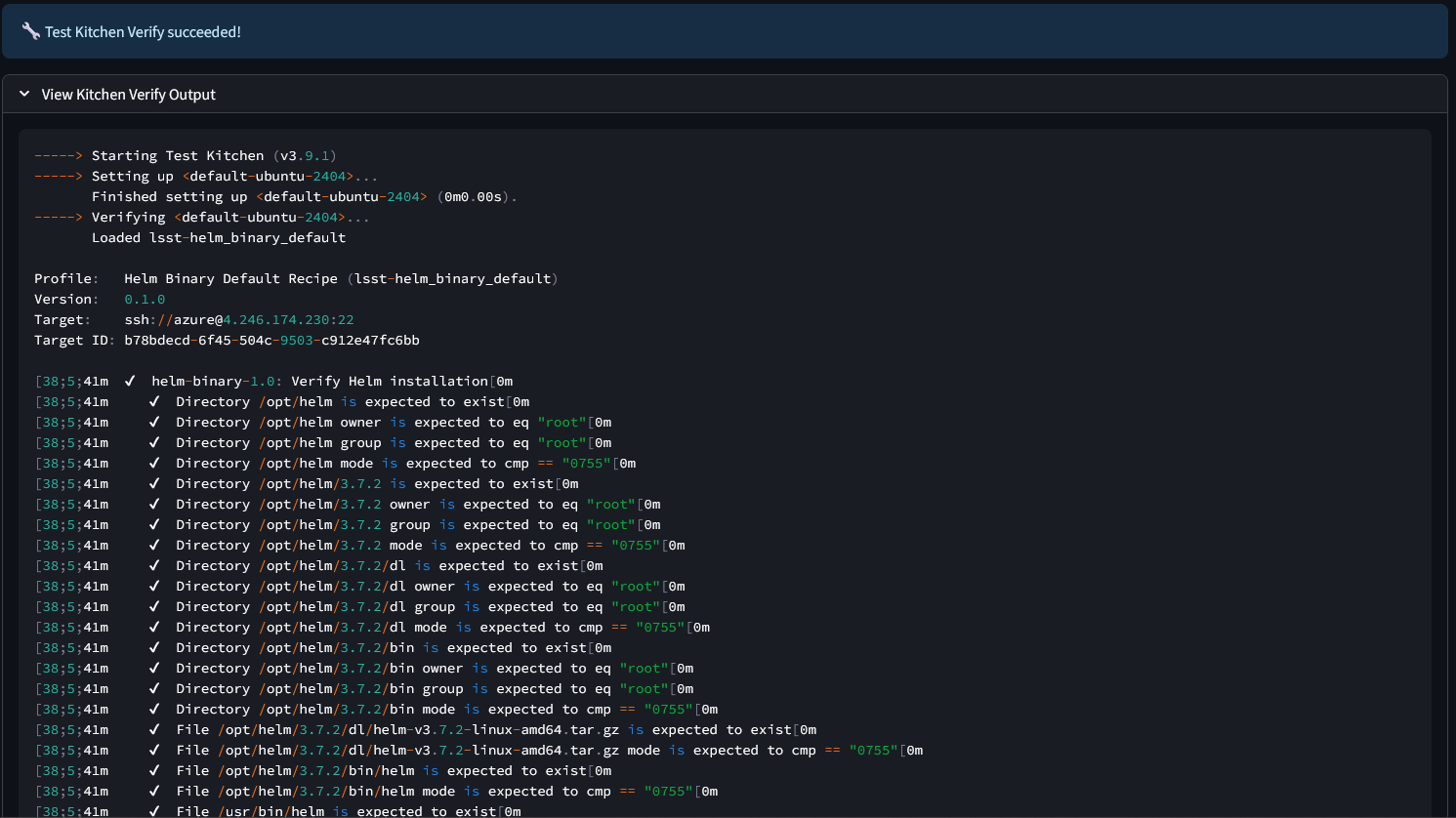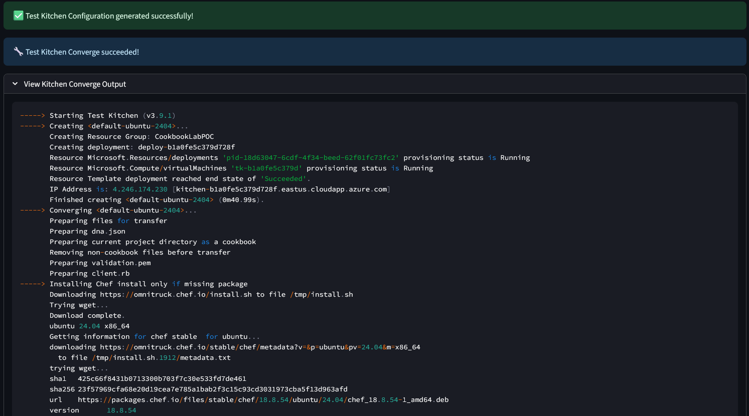 Figure 9: Successful Test Kitchen Configuration Output
