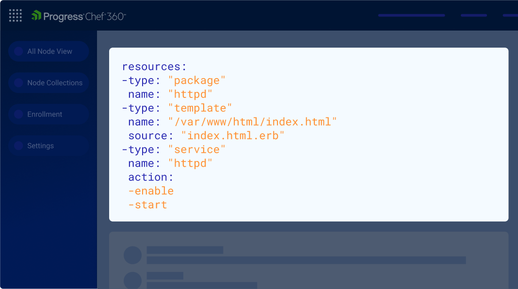 Chef provides out-of-the-box resources, built-in validation tools, CIS/DIS STIG compliance profiles, a visual UI for management, automated waivers to expedite approvals, free learning to bridge skill gaps and direct assistance from the support team.
